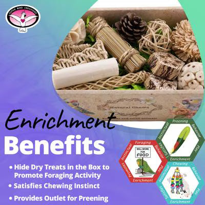 - Provides sensory enrichment with a diverse selection of toy parts and textures for your bird to explore.