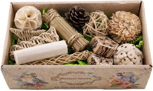 - Satisfies your bird’s instinctual need to chew with destructible materials.