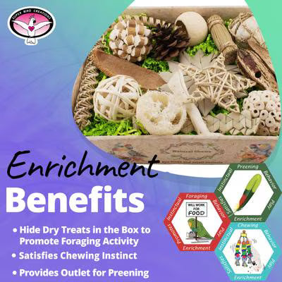 - Provides sensory enrichment with a diverse selection of toy parts and textures for your bird to explore.