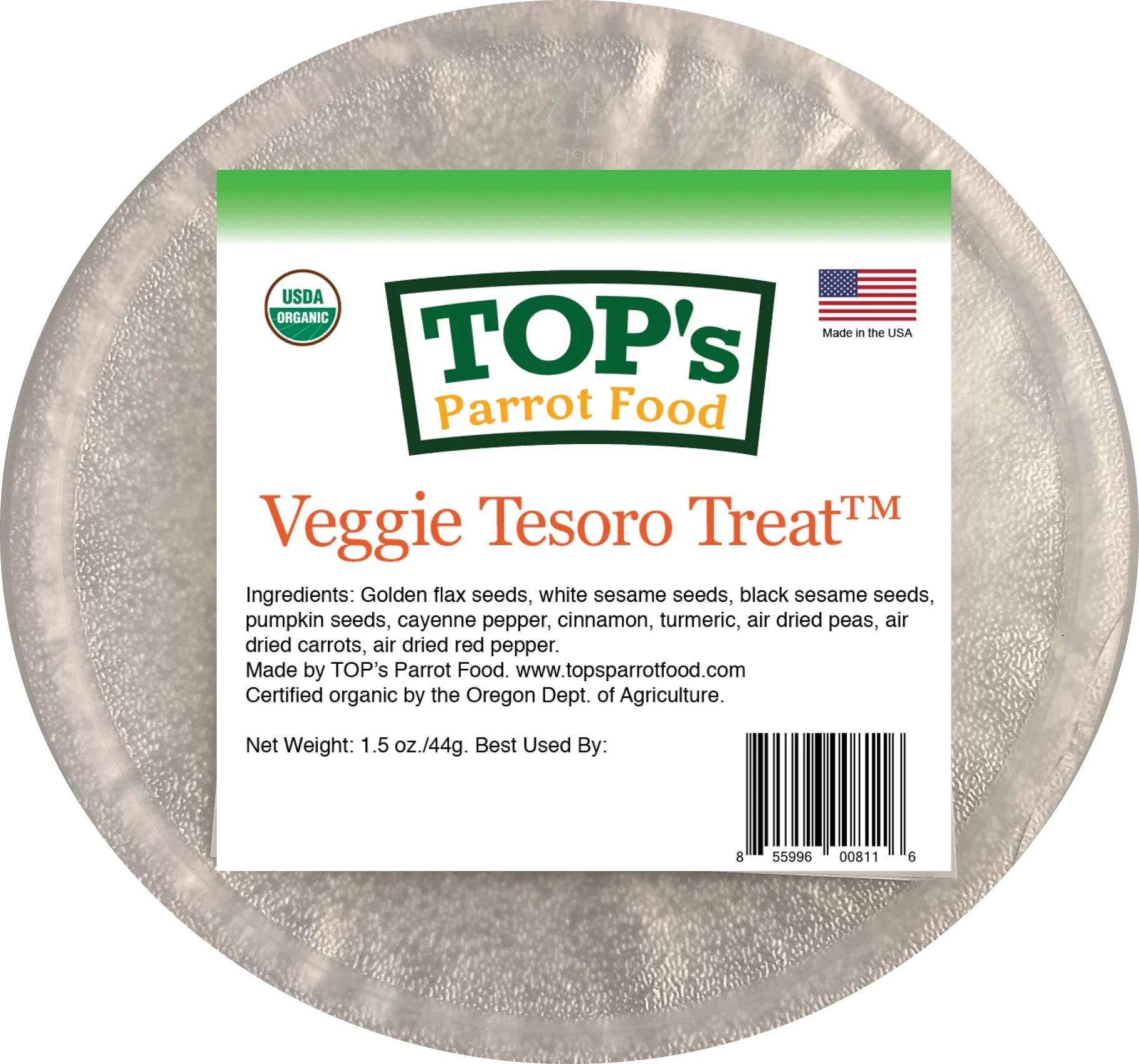 Your parrot will love this USDA Organic Certified, healthy, mineral rich, handmade treat. The organic ingredients are germinated and carefully dehydrated to preserve the nutrition. Each container weighs 1.5 ounces.